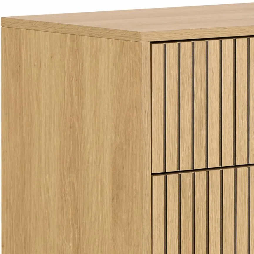 Diese charmante Kommode Albany von Actona bietet viel Platz zum Verstauen zahlreicher Dinge, die ordentlich und griffbereit untergebracht werden sollen. Da sie mit ihrer stilvollen Lamellenfront ebenso gut ins Wohnzimmer wie auch in den Flur oder Schlafraum passt, bietet die Kommode Albany Platz für Spiele, Heimtextilien oder auch zusammengefaltete Kleidung. Optisch besticht sie besonders durch kontrastierende Details, kombiniert mit einer warm gemaserten Oberfläche in Holzoptik.