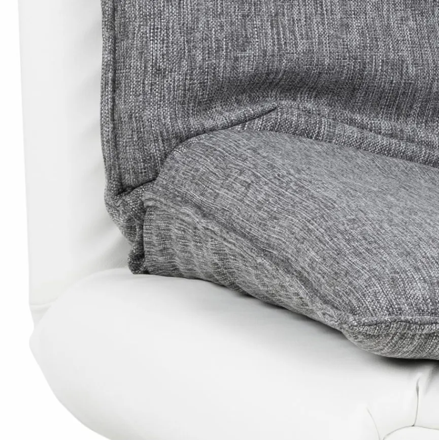 - Sitzbezug aus Stoff in grau, Korpusbezug aus Lederoptik weiß, Füße Metall verchromt