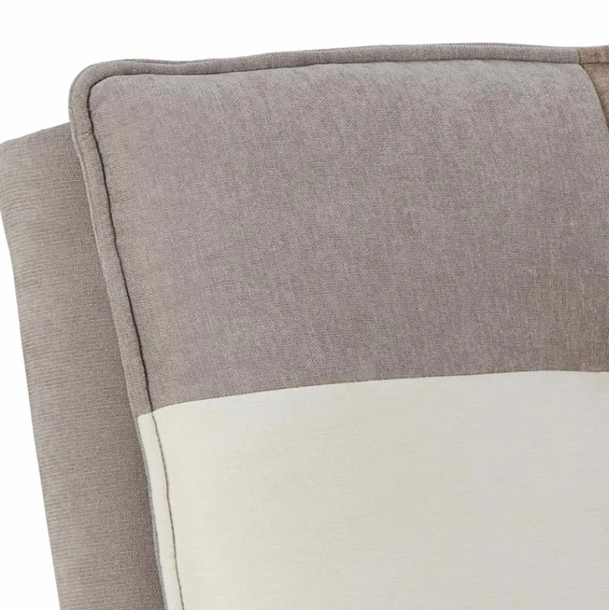 - Bezug aus Stoff (Patchwork) in beige/braun, Füße Metall schwarz