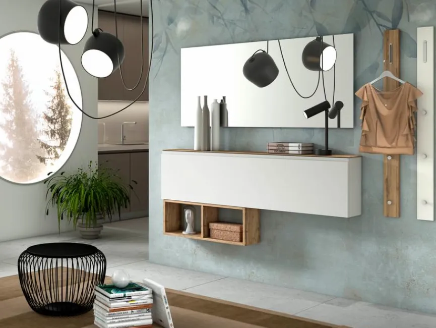 - Garderobe aus Hänge-Schuhschrank, Spiegel, Regal und 2 Garderobenpaneelen