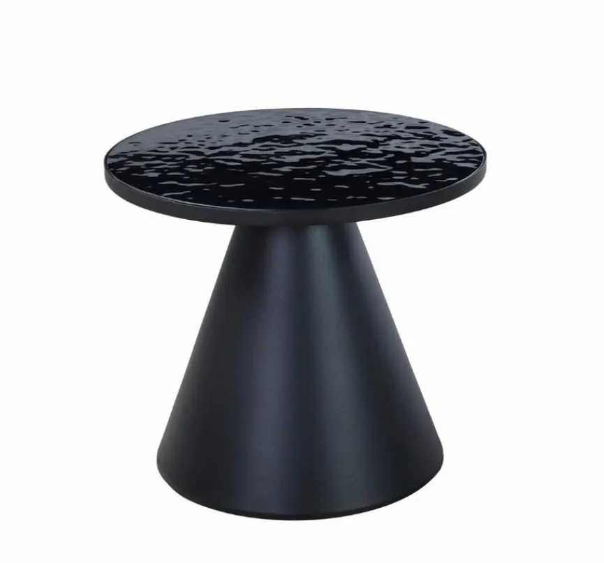 - Tischplatten aus Bubbleglas in dunkelgrau lackiert (12mm)