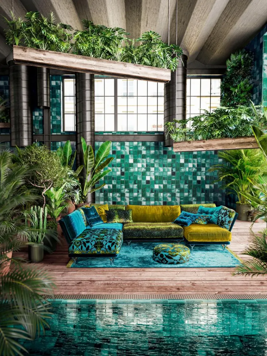 - Bezug aus glänzendem Samtstoff (619426) in enzianblau, Velourstoff (673832) in arabesk türkis, Velourstoff (673932) in boa türkis, Velourstoff (668438) in midsummer oliv, Füße aus Aluminium poliert (26 = Lilie)