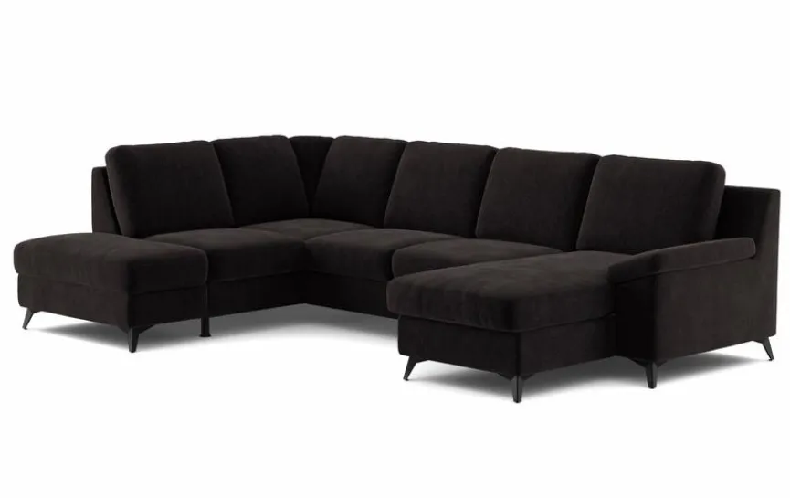- Wohnlandschaft besteht aus Ottomane links, 2-Sitzer ohne Armlehne und Longchair mit Armlehne rechts