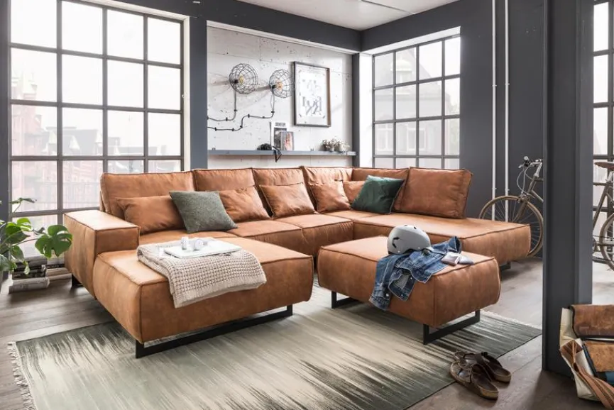 - Wohnlandschaft besteht aus Longchair mit Armlehne links, 2-Sitzer, Ottomane mit Armlehne rechts
