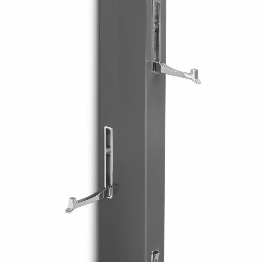 Es sind in erster Linie die klappbaren Haken, die zum außergewöhnlichen Erscheinungsbild der Garderobe Palo beitragen. Aber auch die schmale hohe Form der Kleidergarderobe bewirkt einen extravaganten Look. Die sehr modern wirkende Garderobe Palo lässt sich hervorragend in ein puristisch gehaltenes Wohnumfeld mit wenig Platz integrieren.