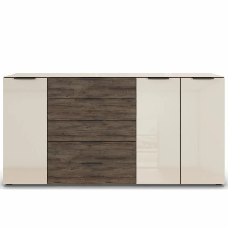 - Mit 3 Türen mit Türdämpfung und 5 Schubladen mit Softclose, Griffe aus Metall in Graphit