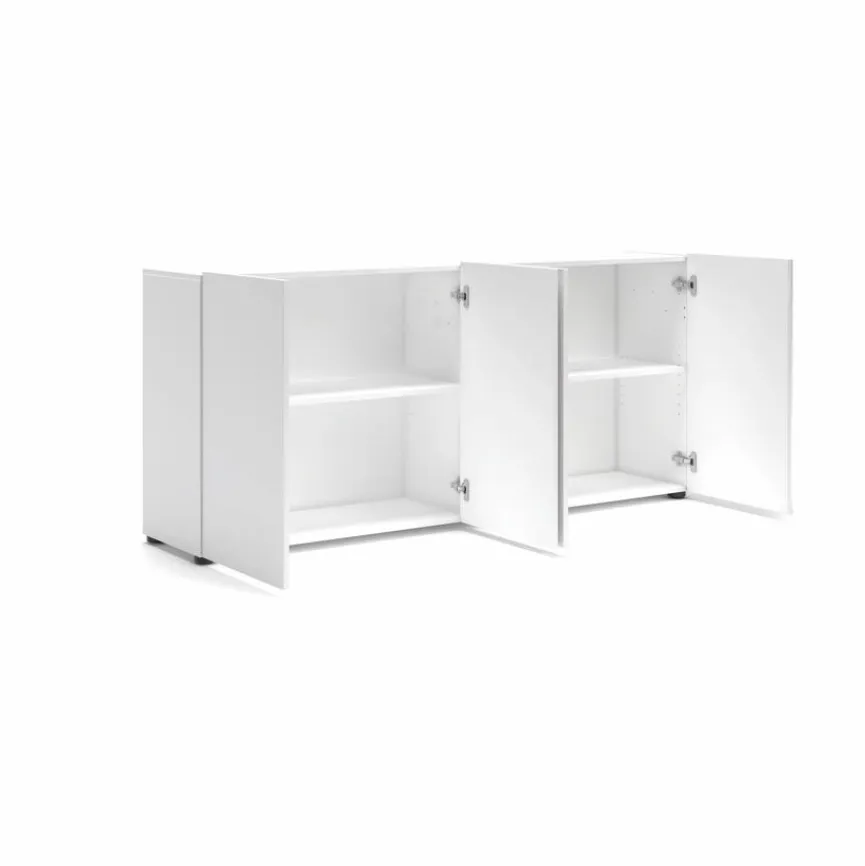 Mit ihrem schlichten und minimalistischen Stil trägt die Kommode Mister zu einem zeitgemäßen Raumdesign bei. Zudem bietet das Sideboard hinter den vier Türen reichlich Platz zum Verstauen von Geschirr oder Wohntextilien. Sie können die vorhandenen Fachböden der Kommode Mister nicht zuletzt bequem in der Höhe verstellen.