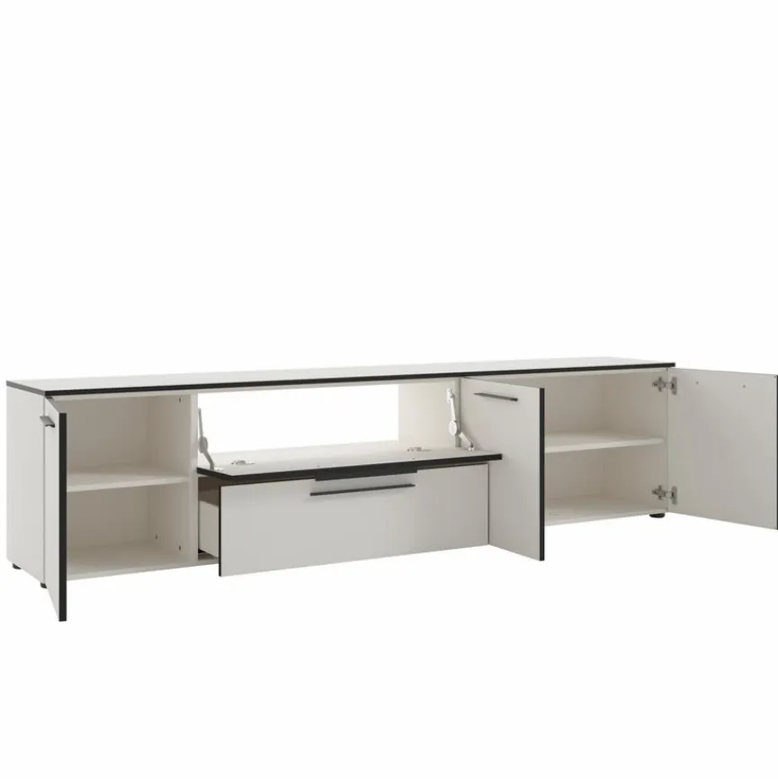 Mit dem Lowboard Soul entsteht durch die kratzfesten Oberflächen, die sanft gedämpften Auszüge und die ruhige Formensprache eine ausgewogene Mischung aus Funktion und Eleganz. Sanfte Linien betonen die moderne Erscheinung und verleihen dem Sideboard eine angenehme Präsenz, die sich harmonisch in alle Wohnräume einfügt. Zudem beweist das Lowboard Soul mit dem praktischen Kabeldurchlass und den verstellbaren Bodengleitern eine durchdachte Alltagstauglichkeit.