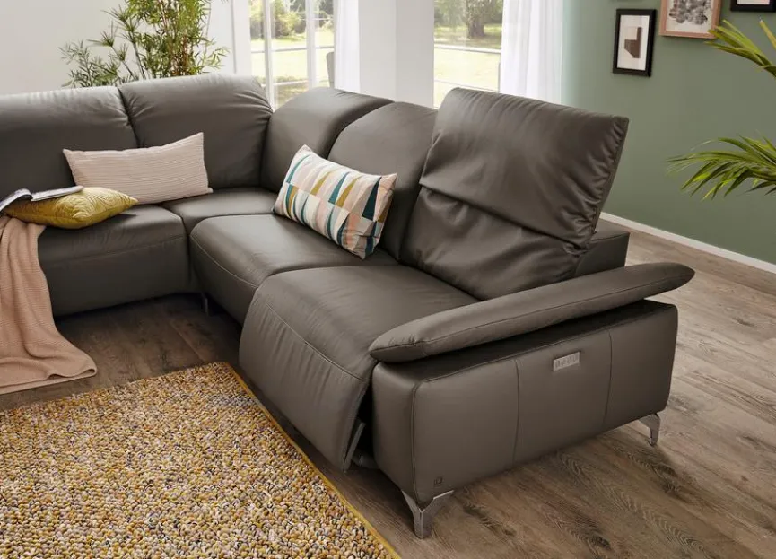 - Inkl. 4 manuelle Kopfteilverstellungen, 1 Armteilverstellung und 1 vollmotorische (motorische Verstellung von Fuß-, Rücken- und Kopfteil) Relaxfunktion im 1,5-Sitzer mit Armlehne