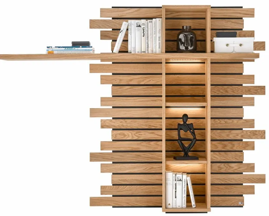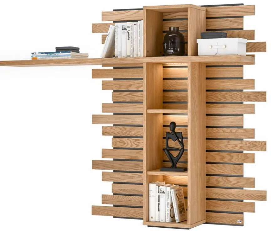 Das angesagte Wandpaneel Jackson von set one by Musterring ist Teil der gleichnamigen Möbelserie, die sich beliebig erweitern lässt. Auf den ersten Blick erinnert es an eine Wandgarderobe, jedoch besitzt es im Gegensatz dazu eine praktische Ablagefläche für Bücher und Dekorationen. So findet das Wandpaneel Jackson beispielsweise seine Verwendung im Wohn- oder Schlafbereich, wo es aufgrund seiner horizontal angeordneten Holzleisten einen tollen Blickfang darstellt.