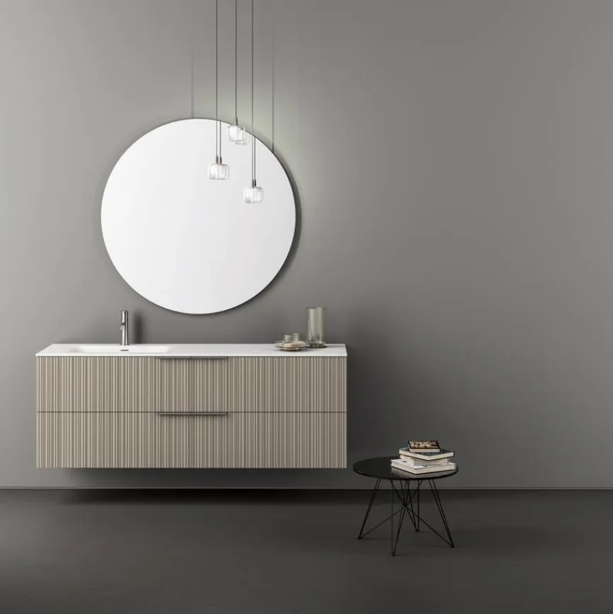 - Waschtischunterschrank mit 2 großen Auszügen und 1 Unterschrank mit 2 großen Auszügen, beides mit 2x Griff Grigio Antracite