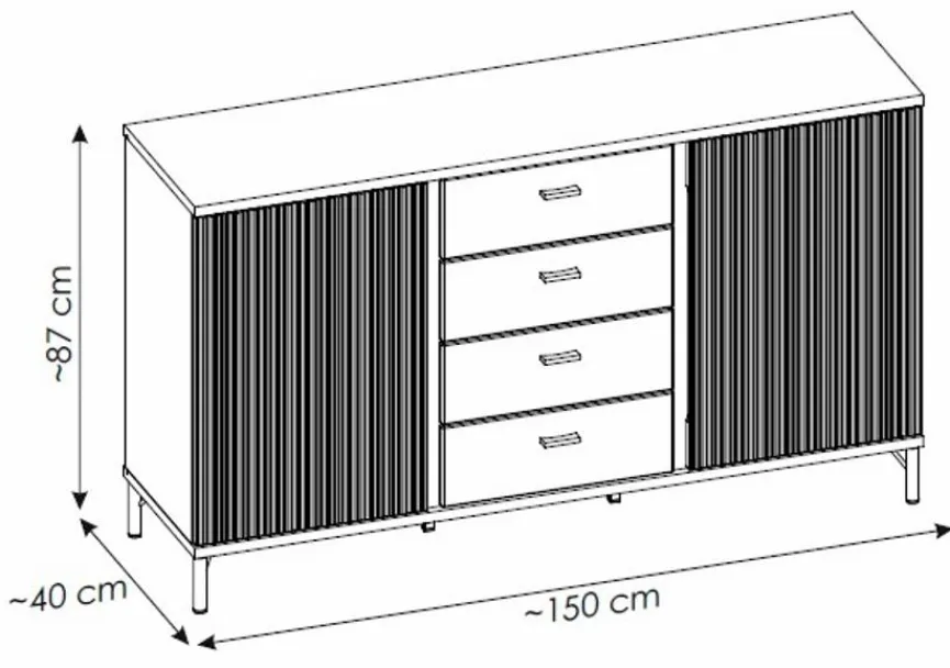 Farbe: SchwarzMaterial: DekorGröße: Breite: 150,00 cm, Höhe: 87,00 cm, Tiefe: 40,00 cm