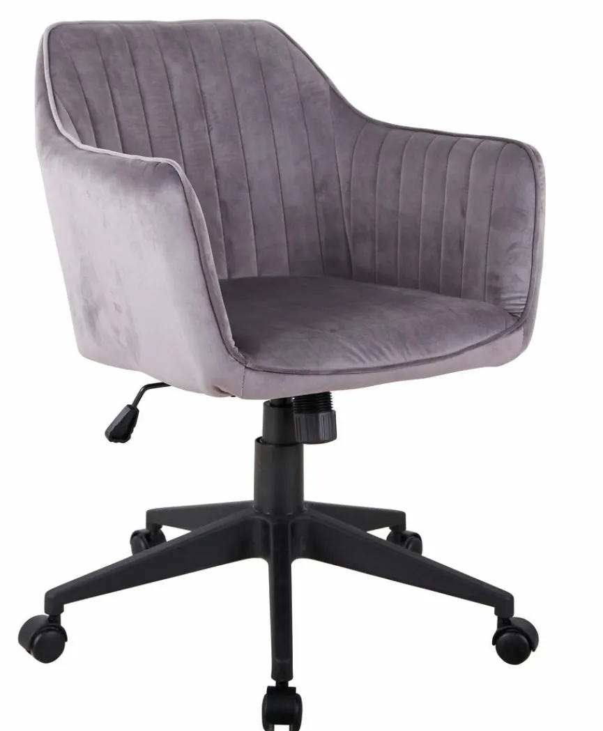 - Bezug aus Samtstoff in dunkelgrau, Gestell aus Kunststoff in schwarz