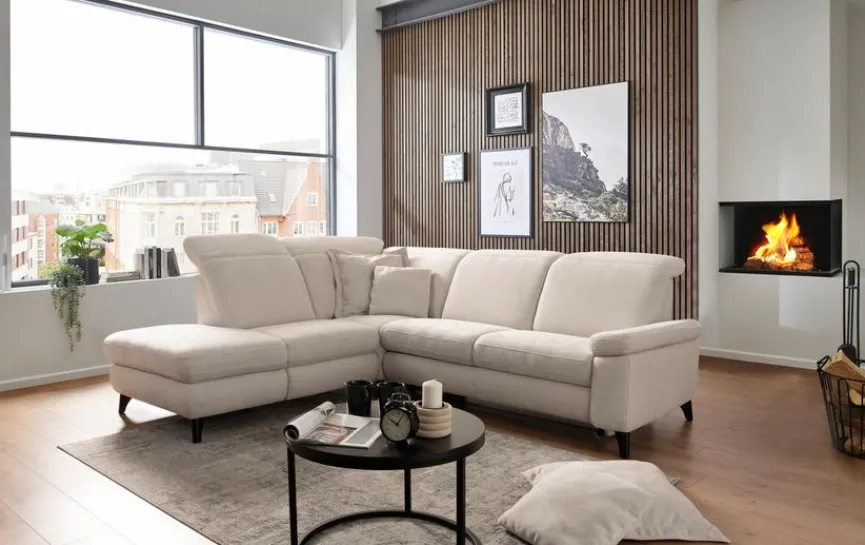 - inkl. Querschläfer echt bezogen im 2-Sitzer, Schubkasten in der Ottomane, Armteilverstellung beim 2-Sitzer und Kopfteilverstellung bei dem kompletten Ecksofa