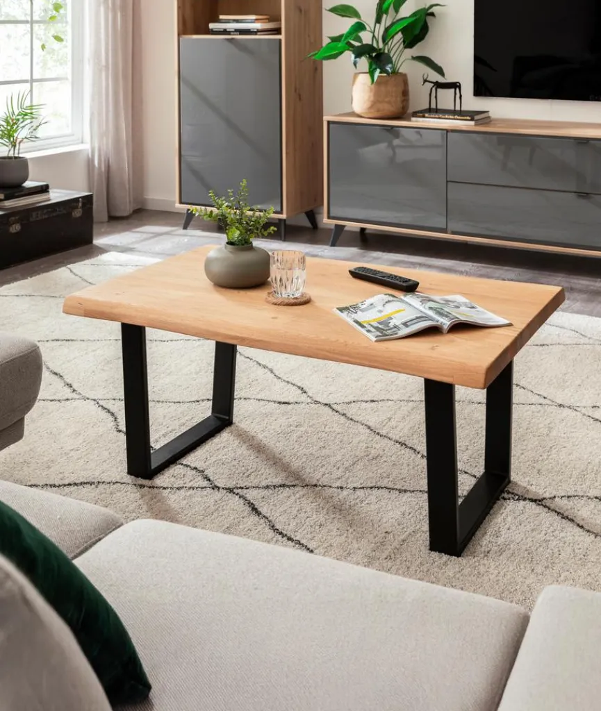 Der Couchtisch Latina fügt sich hervorragend in moderne, natürlich anmutende Raumkonzepte ein. Dank seiner Form und Materialkombination wirkt dieser Wohnzimmertisch vor Sofas aller Größen und Bezüge sehr stilsicher. Zudem hält der Couchtisch Latina für Sie alles griffbereit, was Sie sich für gemütliche Stunden in Reichweite wünschen.