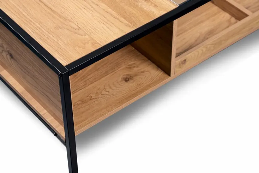 Ein echter Hingucker für jedes Wohnzimmer oder jede Lounge ist der Couchtisch Mandurah 2. Die raffinierte Kombination aus den Materialien Holz, Metall und Glas machen diesen Wohnzimmertisch zu einem herrlich gearbeiteten Möbelstück, das sich hervorragend als Blickfang eignet und jedes Heim stilvoll aufwertet. Der Couchtisch Mandurah 2 bietet außerdem viel Stauraum und Platz für Ihre ganz persönliche Dekoration oder für leckere Snacks beim Fernsehen.