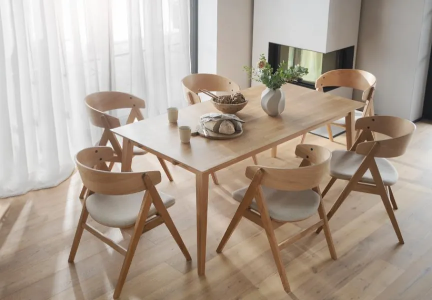 - Gestell aus massiver Eiche in natur, Rückenlehne aus Holzwerkstoff (Sperrholz) in Eiche natur