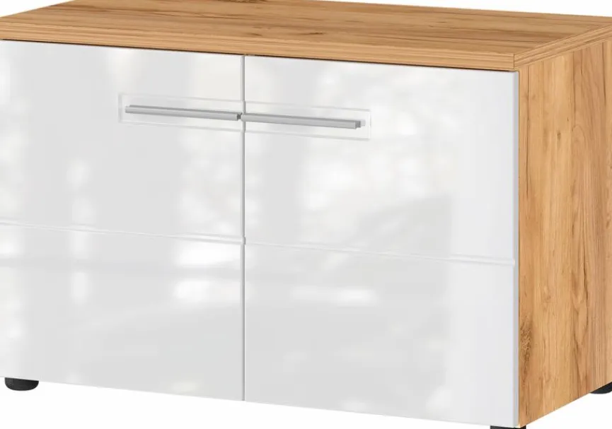 Die Garderobenbank Aledo der Marke Germania ist nicht nur praktisch, sondern überzeugt auch in puncto Optik. Mit der Hochglanzfront und dem geschmackvollen Naturholzkorpus erhält die Umkleidebank ein attraktives Äußeres. Darüber hinaus bietet die Garderobenbank Aledo reichlich Stauraum und sorgt für Ordnung in Ihrem Eingangsbereich.