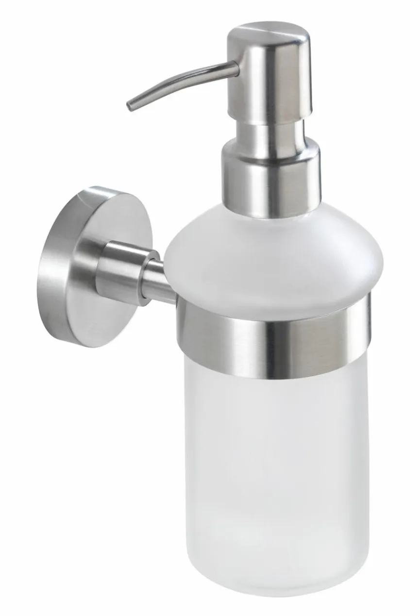 Flüssigseifen und Waschlotionen lassen sich im WENKO Seifenspender Bosio auf eine sehr attraktive Art aufbewahren. Der praktische Pumpspender ermöglicht ein einfaches und genaues Dosieren. Mit seiner Halterung aus rostfreiem Edelstahl und dem Behälter aus satiniertem Glas ist der Seifenspender Bosio von WENKO zudem ein sehr hochwertiges Badaccessoire.