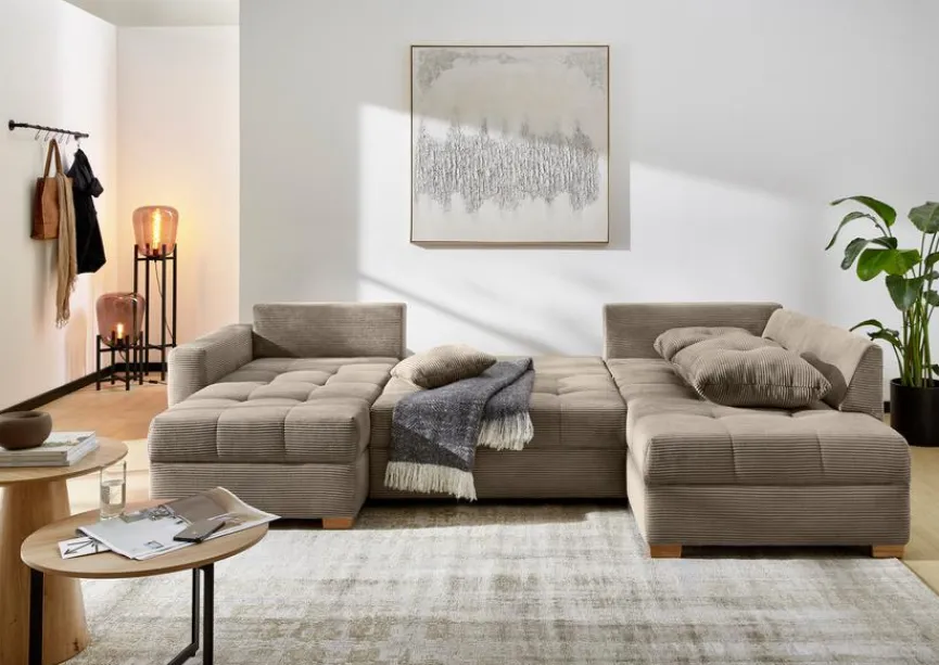 Farbe: TaupeMaterial: CordGröße: Breite: 313,00 cm, Höhe: 89,00 cm, Tiefe: 200,00 cm