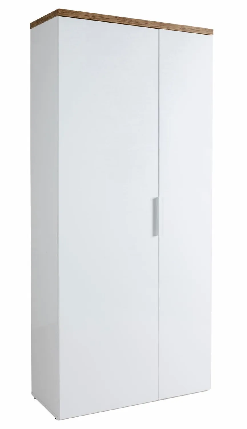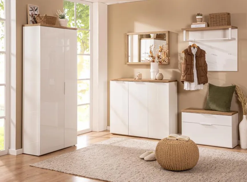 Comosad präsentiert Ihnen mit dem Garderobenschrank Mundi ein hochwertiges Möbelstück im zeitlosen Design. Der Dielenschrank lässt sich variantenreich kombinieren und bietet zudem viel Stauraum hinter den beiden Türen. Unter anderem eignen sich die sechs Einlegeböden, die der Garderobenschrank Mundi zu bieten hat, perfekt diverse Alltagsgegenstände zu verwahren.
