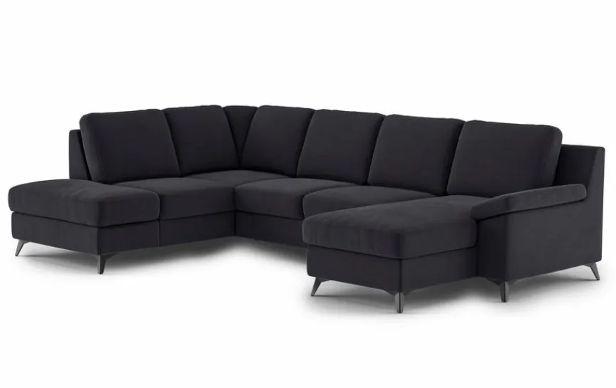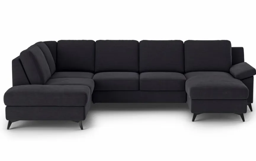 - Wohnlandschaft besteht aus Ottomane links, 2-Sitzer ohne Armlehne und Longchair mit Armlehne rechts