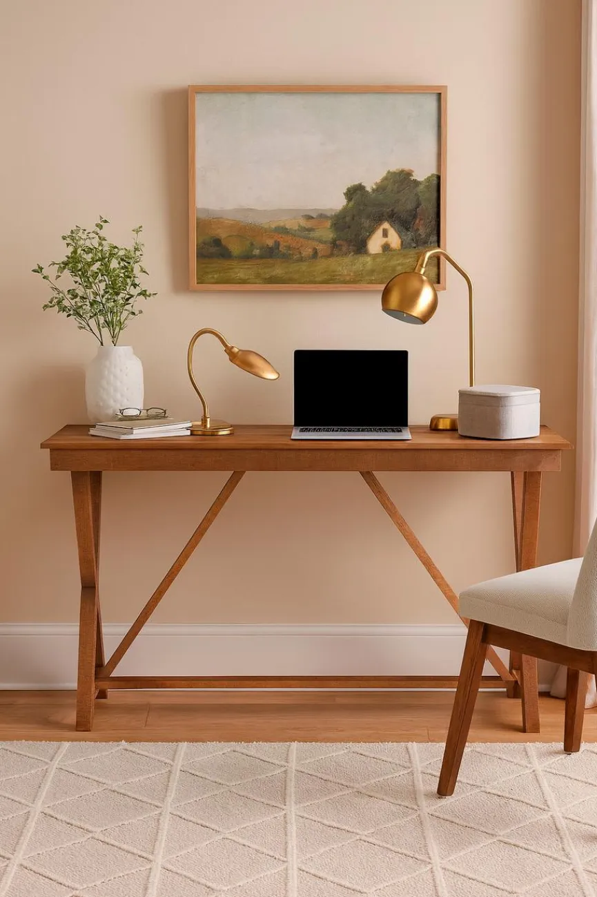 Mit dem Schreibtisch Kolsterrange von DAHEIM und einem bequemen Stuhl verwandeln Sie Ihr Homeoffice in eine freundliche, warme Arbeitsumgebung. Er wirkt dank seiner Formgebung und seines Materials kernig und verbreitet ein angenehmes, natürliches Flair. Der Schreibtisch Kolsterrange wertet die Wohnlichkeit eines Büros sofort auf.