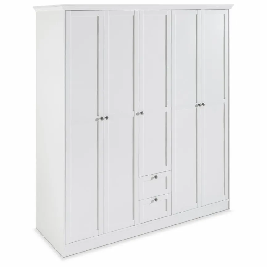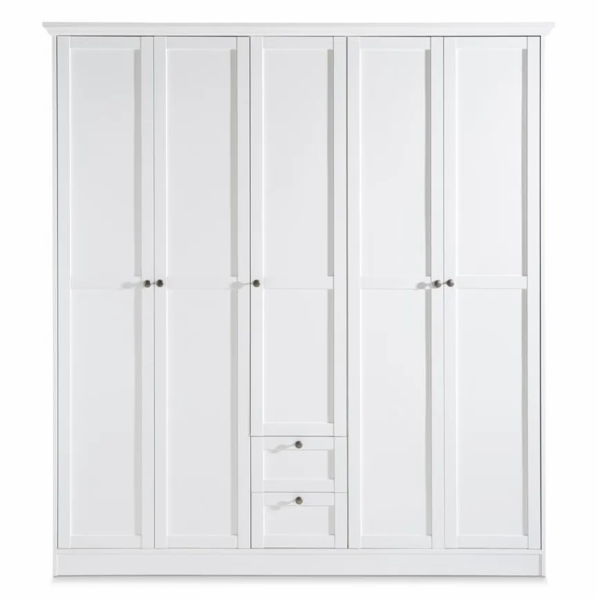 Der Kleiderschrank Landwood bietet viel Platz für Hosen, Shirts, Hemden und Co. Hinter fünf Türen und zwei Schubladen können Sie Ihre Dinge gut ordnen. Durch die Rahmenoptik erhält der Kleiderschrank Landwood außerdem ein stilvolles und vielseitig kombinierbares Äußeres.