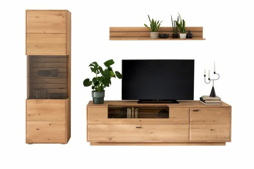 - Bestehend aus Vitrine, TV-Lowboard und Wandboard