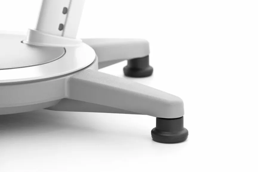 - Pendelnd gelagerte Rückenlehne, Höhe über Rastermechanik verstellbar, mit Universalrollen die für Hart- und Teppichboden geeignet sind