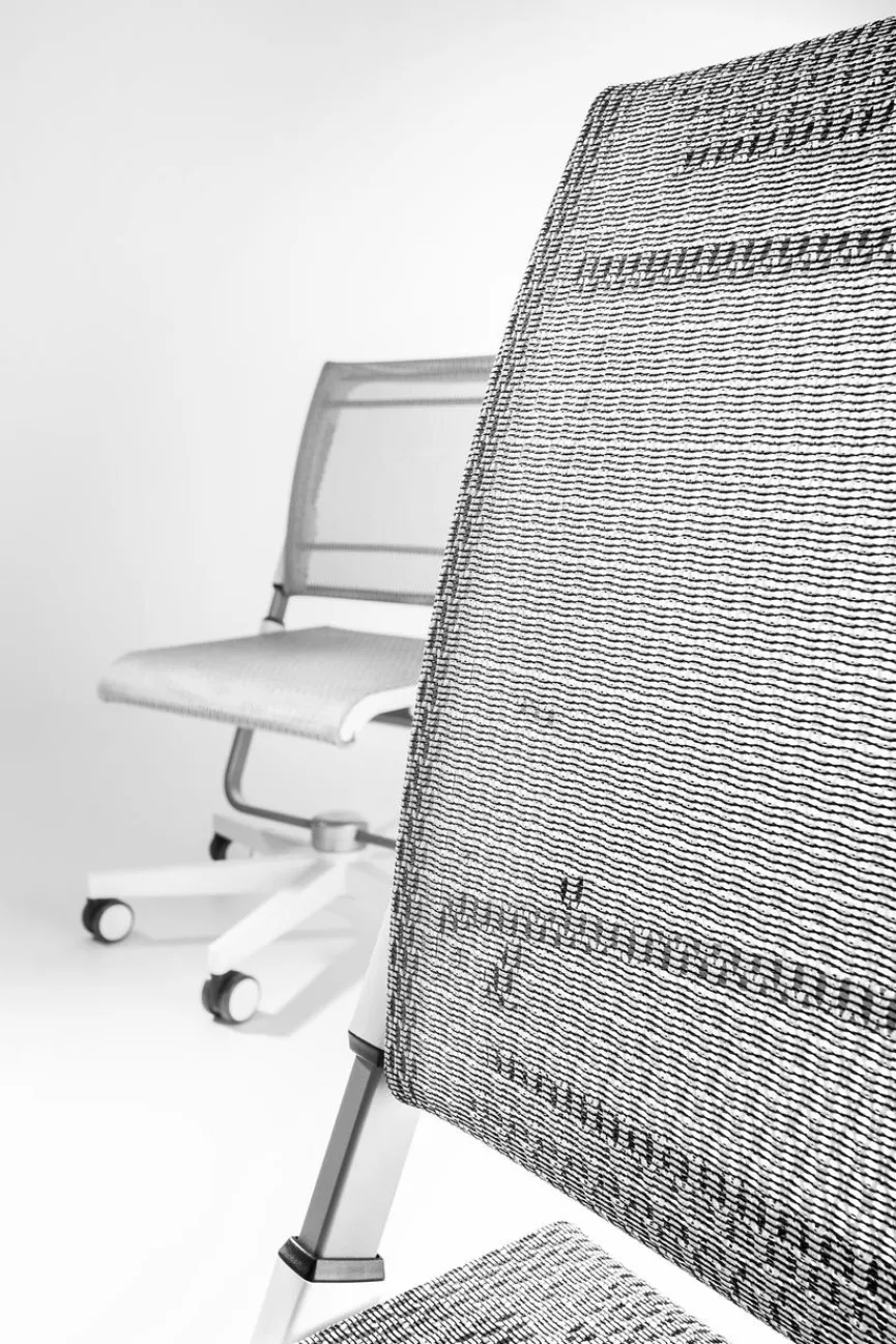- Stuhl mit silberfarbigem Netzbezug , Gestell aus Stahl