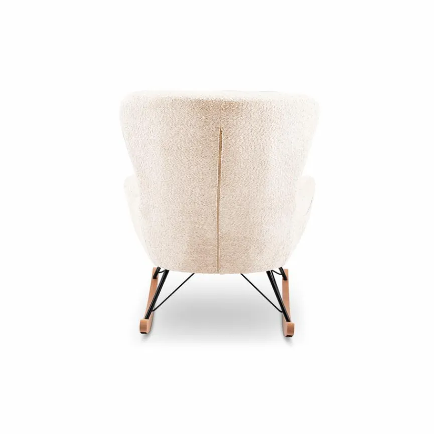 - Bezug aus Stoff in beige, Beine aus Metall in schwarz und Kufe aus Holz in Buche massiv