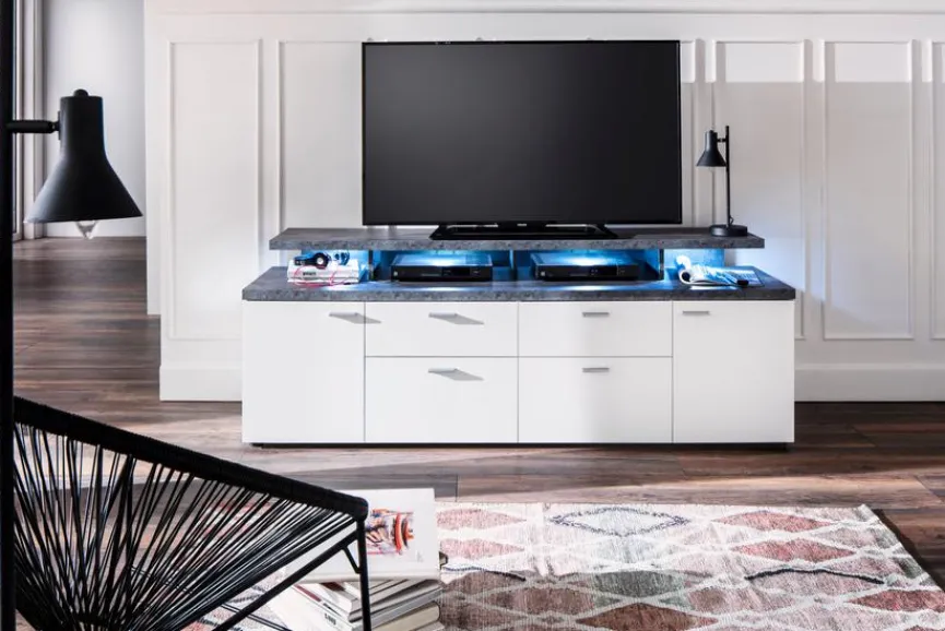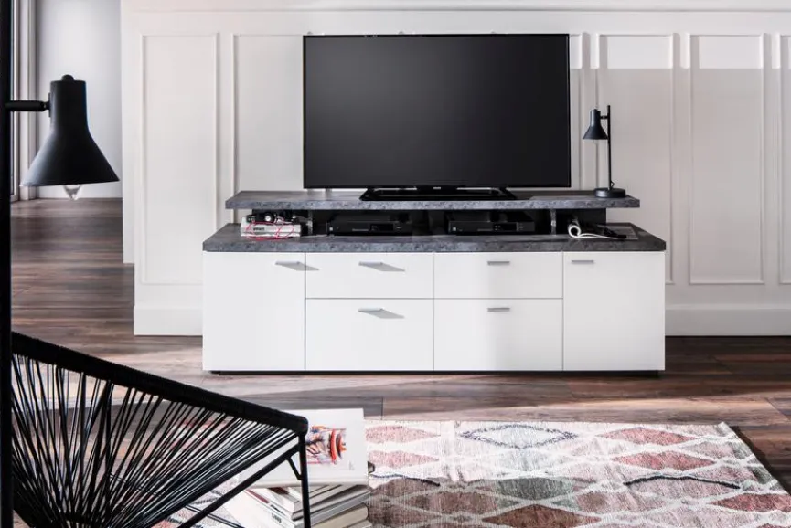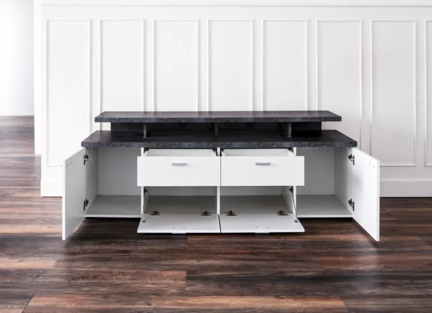 - Mit 2 Türen, 2 Klappen und 2 Schubkästen