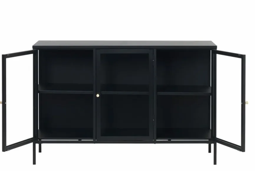 Schnell wird die Vitrine Carmel zum neuen Blickfang im Wohnzimmer, Büro oder Eingangsbereich. Die schicke Glasvitrine bietet viel Platz für den Fernseher, Dekoartikel, Bücher und Akten. Das Sideboard ist im zeitlosen und modernen Look gehalten und vielseitig kombinierbar. Um schöne Akzente zu setzen, eignen sich beispielsweise farbige Vasen gut. Mit der Vitrine Carmel werden die eigenen vier Wände im Handumdrehen zum Lieblingsort.