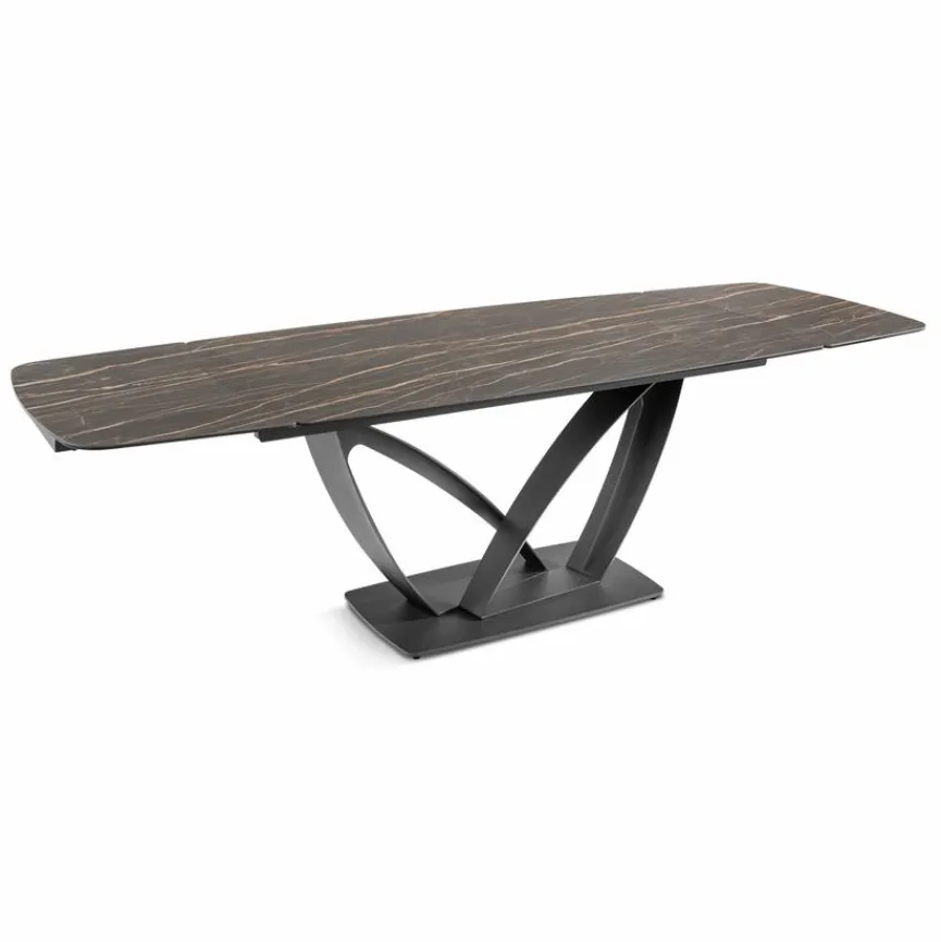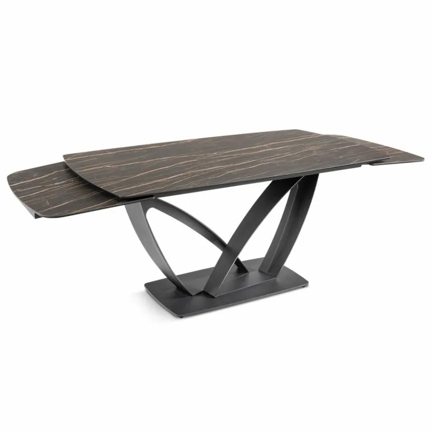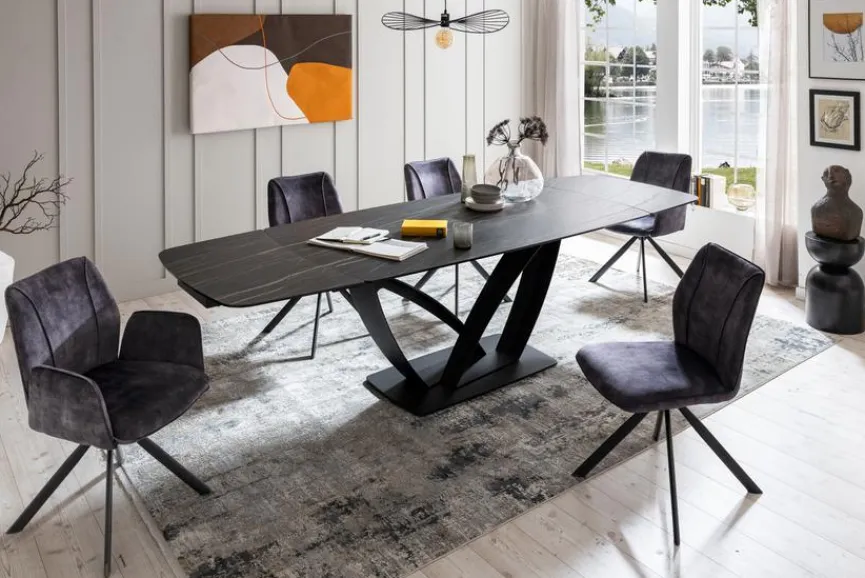Mit dem Esstisch Rio 180/280×100 cm sorgen Sie für einen gemütlichen Hingucker in Ihrer Wohnung. Dank der anpassbaren Länge ist dieser Esszimmertisch der perfekte Teamplayer für jeden Anlass mit Familie und Freunden. Der Esstisch Rio 180/280×100 cm setzt mit seinem geschwungenen Gestell und der schimmernden Oberfläche einen tollen Akzent.