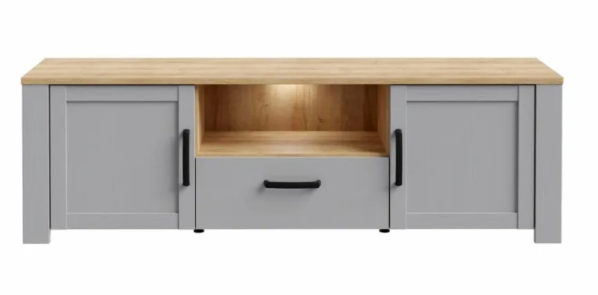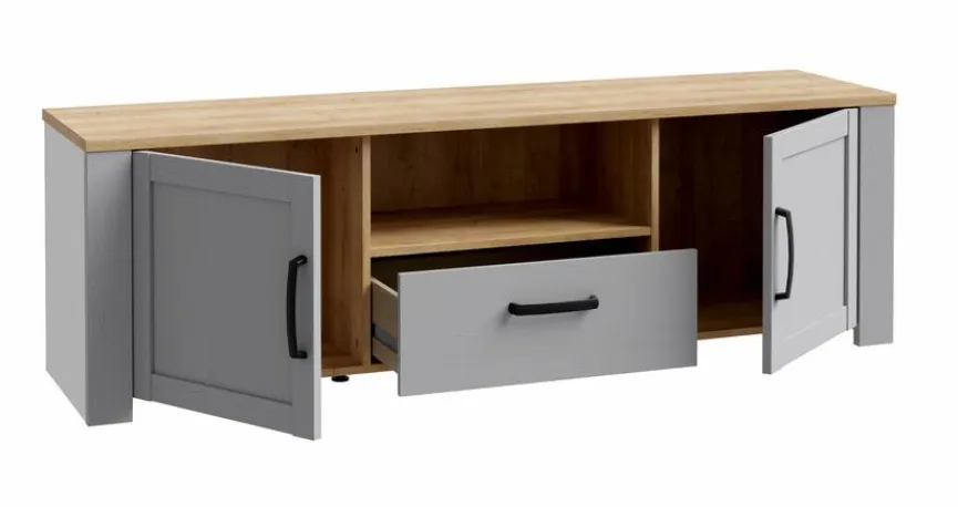 - Mit 2 Türen, 1 Schubkasten und 1 offenen Fach