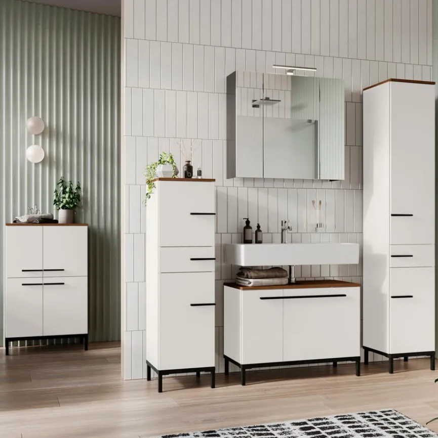 Der Hochschrank Yonkers von Germania stellt eine schöne Option für ein modernes Badezimmer dar und eignet sich wunderbar zum Verstauen von Handtüchern und mehr. Schlanke Steggriffe, geradlinige Korpusformen und wirkungsvolle Farbkontraste bestimmen den Look dieses Möbels. Dank der verstellbaren Einlegeböden lässt sich der geräumige Hochschrank Yonkers flexibel nutzen.