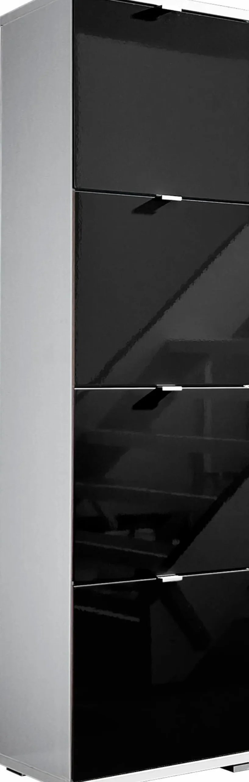 Der Schuhschrank Colorado aus dem Hause Germania bietet mit seinen vier Klappen genügend Platz zum Verstauen Ihrer Schuhe. Zudem punktet das Möbel mit seinem geradlinigen und cleanen Hochglanz-Design. Daher ist der praktische Schuhschrank Colorado der Marke Germania ein attraktiver Blickfang in jedem Eingangsbereich.