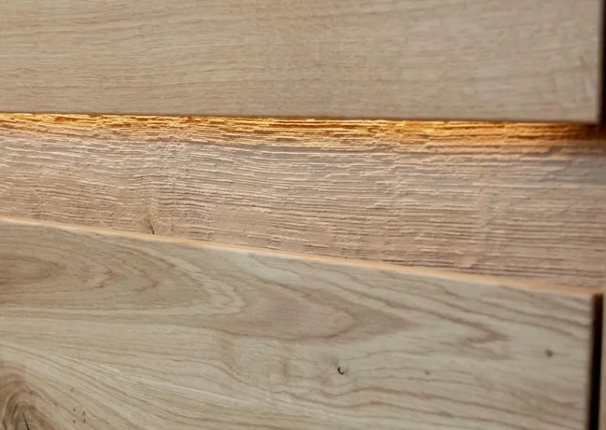 Für Massivholz – auch Vollholz – werden Querschnitte aus einem Baumstamm herausgearbeitet und durch Bohren, Fräsen oder Hobeln weiterverarbeitet. Das Material ist ein echtes Naturprodukt, das in seiner Struktur und Farbe einzigartig ist.