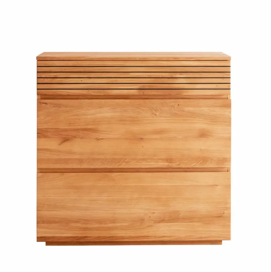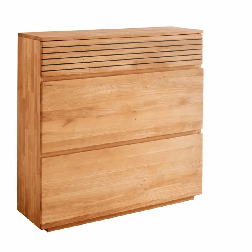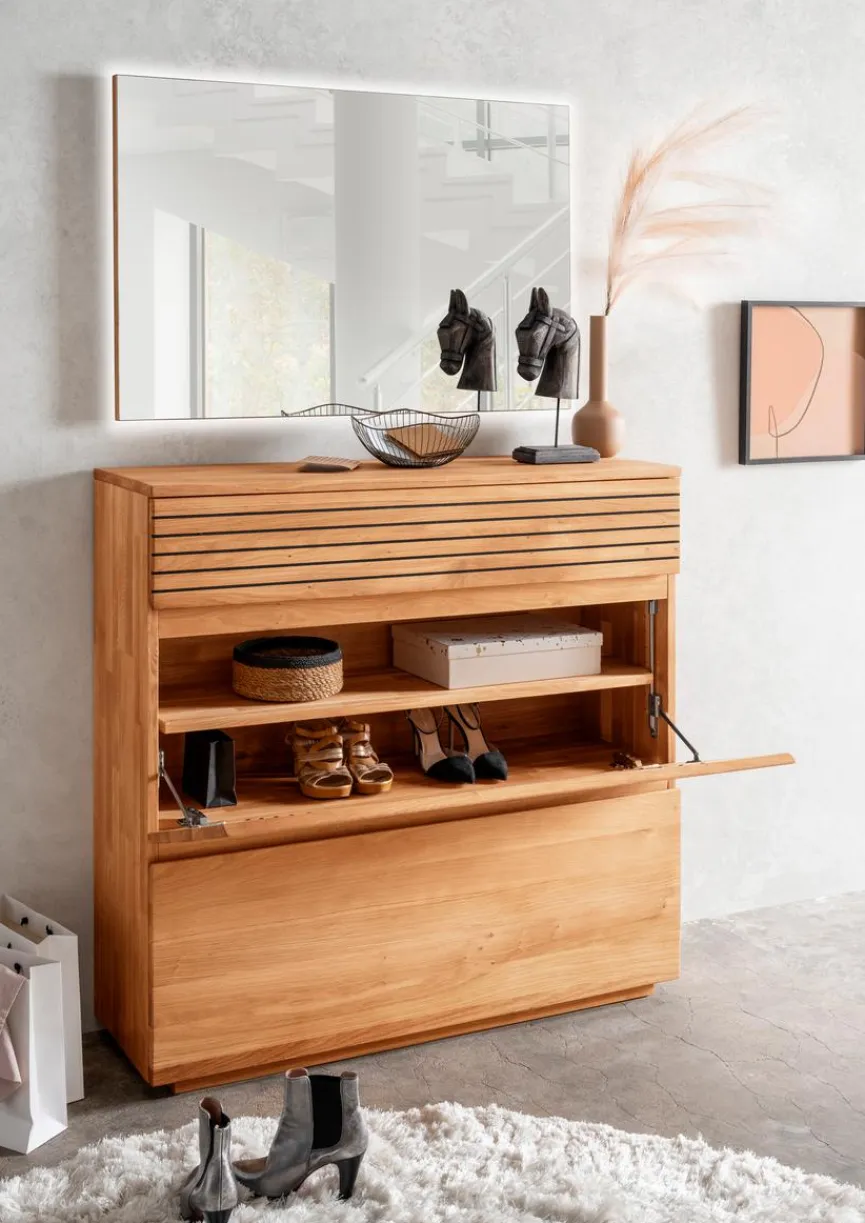 Mit der Schuhkommode Sorrent von Gradel entsteht eine warme Ausstrahlung, die in Kombination mit den klaren Linien ein harmonisches Gesamtbild verleiht. Die fein strukturierten Lamellen verleihen dem Schuhschrank eine lebendige Wirkung und unterstreichen die hochwertige Verarbeitung. Zudem stellt die Schuhkommode Sorrent durch die Schubkästen, Böden und Klappen eine durchdachte Organisationslösung dar.