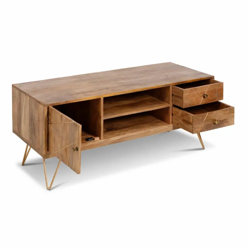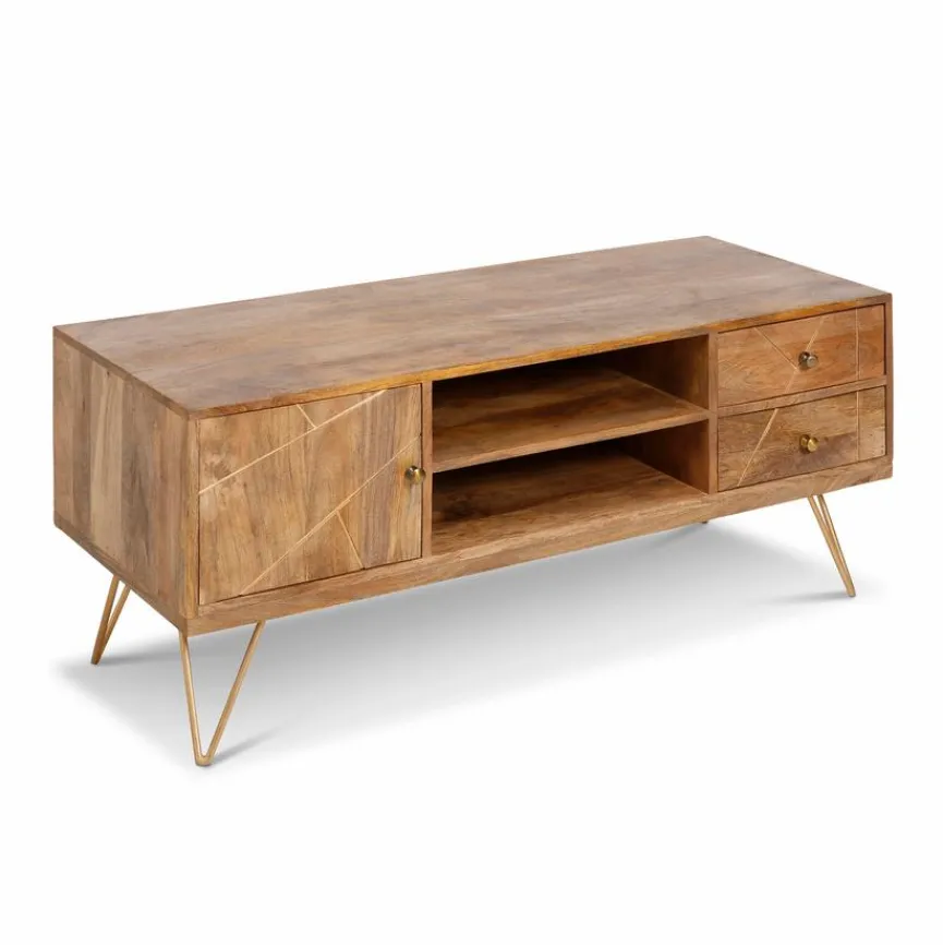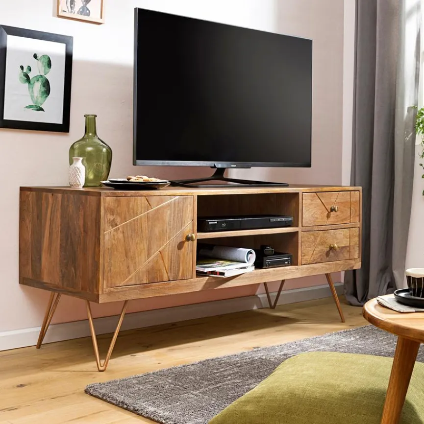 Mit seinem edlen Äußeren ist das Lowboard Scan eine optische Bereicherung in Ihrem Zuhause. Der Naturholzstil des Sideboards bekommt durch die geschmackvollen Einfräsungen an der Front das gewisse Etwas. Abgerundet wird das Design durch die stylishen Beine. Darüber hinaus bietet das Lowboard Scan genügend Stauraum für verschiedene kleinere Dinge.
