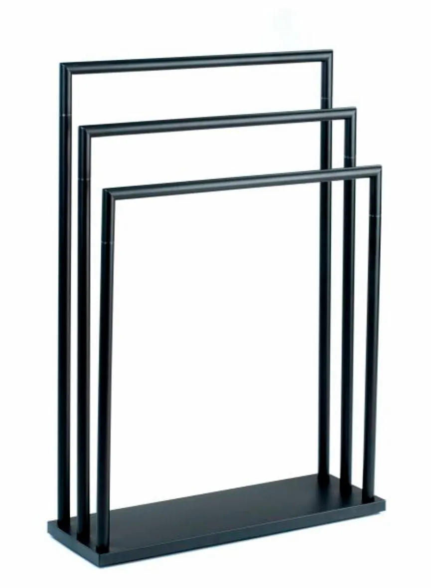 Mit dem Handtuchständer Waldi erhalten Sie ein robustes Einrichtungsobjekt für Ihr Badezimmer. Er bietet Ihnen auf drei Stangen Platz für zahlreiche Tücher oder andere Textilien. Dank seines schlichten Looks fügt sich der Handtuchständer Waldi zudem problemlos in viele Einrichtungen des Sanitärbereichs ein.