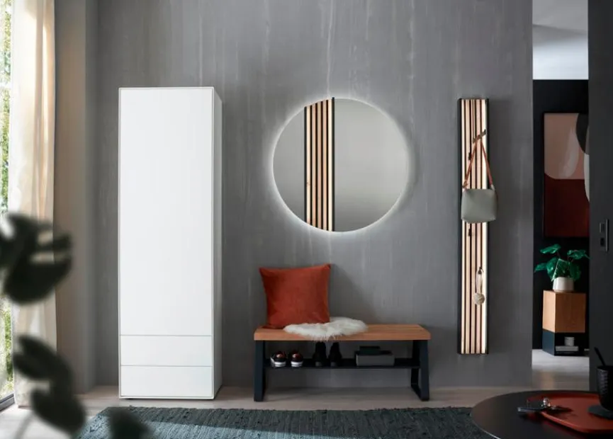 Die Garderobenkombination Salvo von Hartman vereint Funktionalität und Design in einem kompakten Ensemble. Sie besteht aus einer stabilen Ablagefläche und einem hohen Paneel mit praktischen Haken für Jacken, Taschen oder Accessoires. Die Garderobenkombination Salvo bietet ausreichend Stauraum und sorgt für Ordnung im Flur oder Eingangsbereich. Durch ihre klare Formgebung fügt sie sich harmonisch in verschiedene Wohnkonzepte ein und schafft einen einladenden ersten Eindruck.