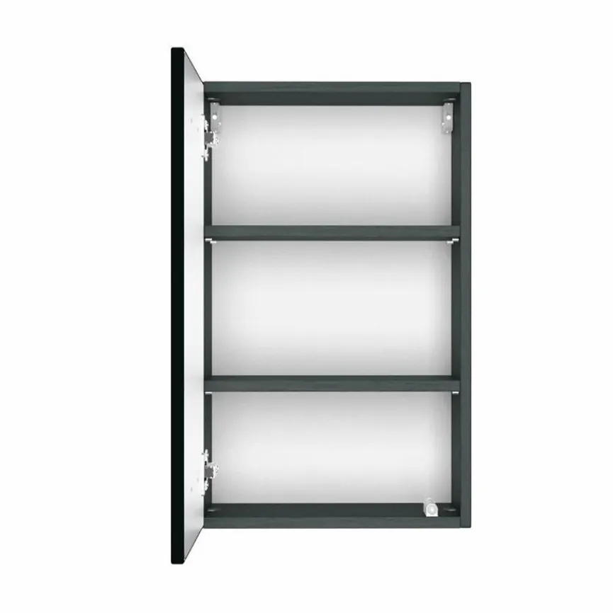 Der Oberschrank Baabe wurde mit einem geradlinigen Aussehen entworfen, das sich in unterschiedliche Einrichtungsstile hervorragend einfügt. Dank seiner Fertigung aus strapazierfähigen Materialien verspricht das Möbel eine entsprechende Haltbarkeit. Hinter der auf kurzen Druck mit den Fingern zu öffnenden Tür bietet der Oberschrank Baabe viel Platz, um Kosmetik- und Pflegeutensilien oder andere Gegenstände zu verstauen.