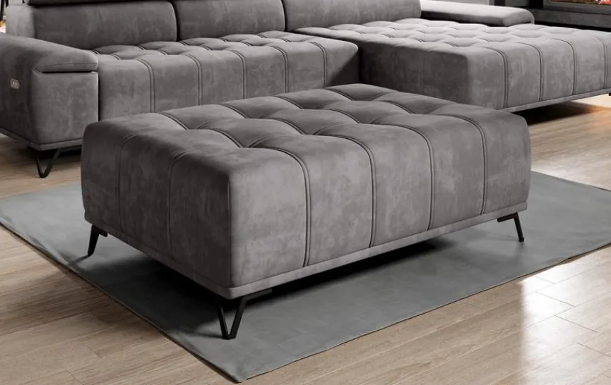 Mit dem Hocker Palladio zieht ein besonders dekoratives Möbelstück in Ihr Zuhause ein! Durch seine auffällige Steppung auf dem wunderschönen azurblaunen Stoffbezug und die filigranen, schwarzen Metallfüße wertet er jedes Wohnambiente auf elegante Art und Weise auf. Ob als Fußablage oder um darauf verschiedenste Gegenstände zu platzieren – mit dem Hocker Palladio ist Ihnen ein echter Hingucker gewiss.