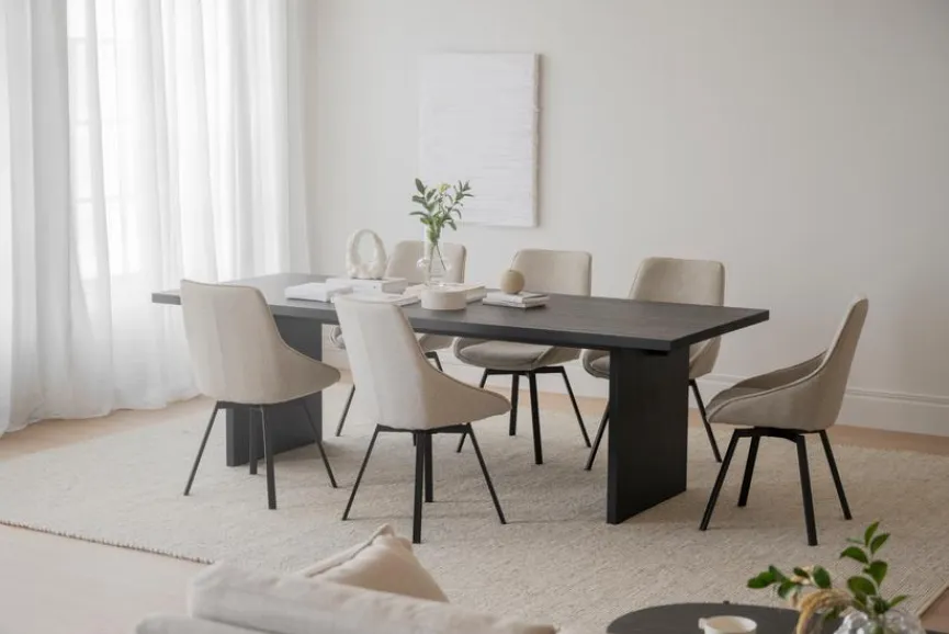 Der Esstisch Emmett 240×95 cm von DAHEIM besticht mit seinem bewusst dezenten Design und seiner wunderschönen, robusten Holzoptik. Dank der großzügigen Abmessungen bietet dieser Esszimmertisch jede Menge Platz für Sie und Ihre Gäste. Besonders hübsch wirkt der Esstisch Emmett 240×95 cm in Kombination mit schnörkellosen Einrichtungsstilen und Möbelstücken aus natürlichen Materialien.