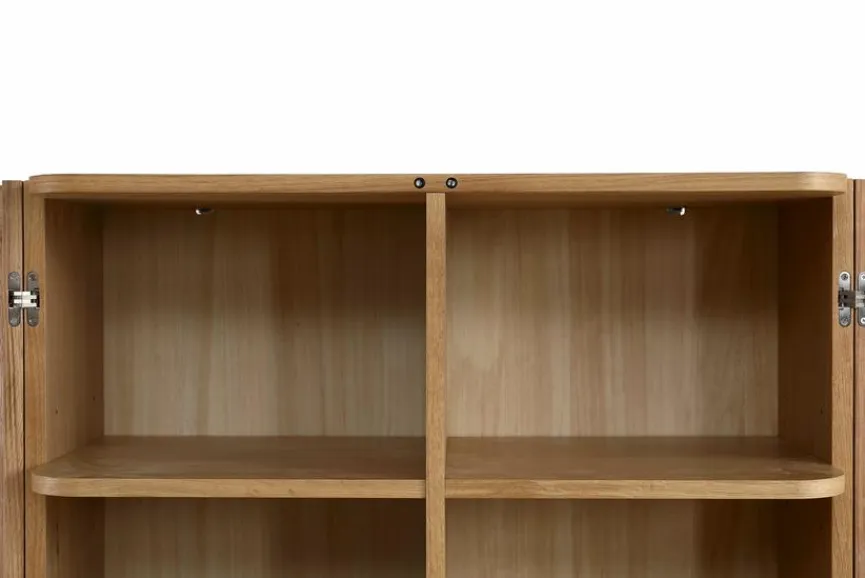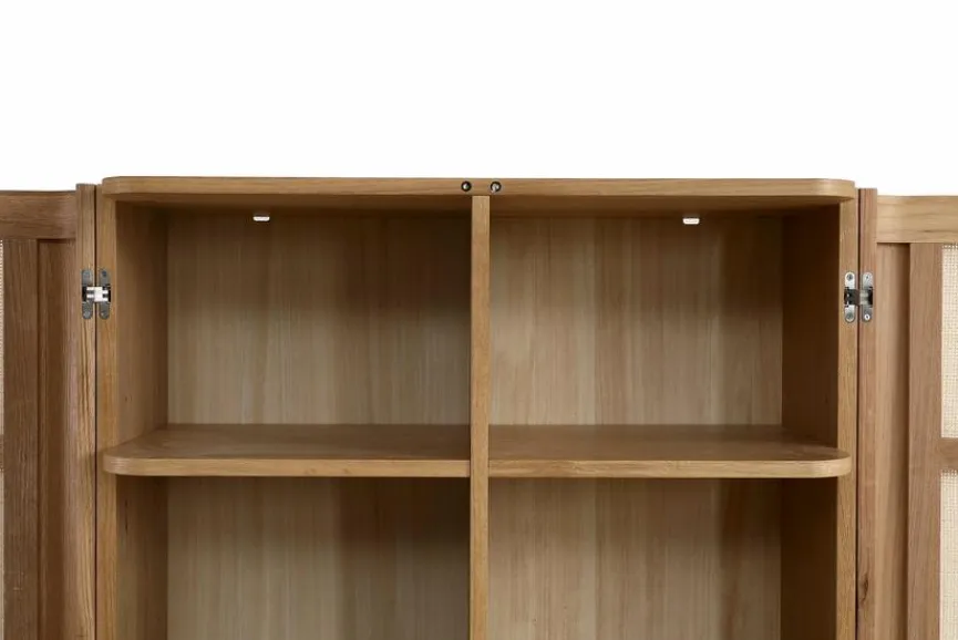Das Highboard Kokoon von DAHEIM bringt jede Menge originellen Charakter und Gemütlichkeit mit sich. An den Seitenbereichen stark abgerundete Türen im Flechtdesign verleihen dieser Kommode ihren herrlich exotischen Touch. Kombinieren Sie das Highboard Kokoon zum Beispiel mit Möbeln im mediterranen Chic oder mit Interieur im Kolonialstil!