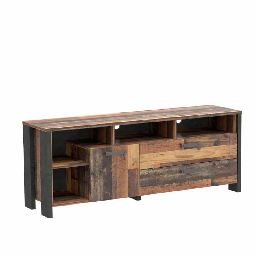 Mit dem TV-Lowboard Clif holen Sie sich zweifellos ein sehr praktisches Möbelstück nach Hause, das genügend Platz für Ihre Utensilien bietet. Zudem begeistert die Kommode mit ihrem rustikalen Stil, der durch die Verschraubungen auf der Vorderseite noch verstärkt wird. Das TV-Lowboard Clif ist daher ideal als fürs Wohnzimmer oder Jugendzimmer geeignet.