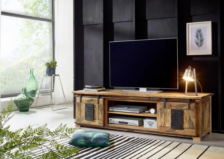 Das TV-Lowboard Railway ist ein hochwertiges Möbel, das mit seiner gelungenen Kombination aus Funktionalität und Qualität punktet. Der TV-Unterschrank bietet Ihnen viel zusätzlichen Stauraum für diverse Utensilien und ausreichend Platz für einen großen Fernseher. Mit dem TV-Lowboard Railway stellen Sie zudem Ihr Gespür für ein wohnliches Ambiente unter Beweis.