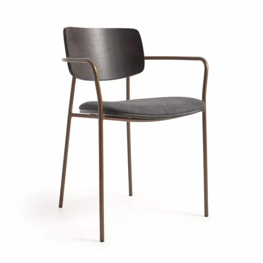 Mit dem Stuhl Maureen der Marke Kave Home können Sie sich stilsicher einrichten. Der Rücken mit Eschefurnier harmoniert perfekt mit dem Gestell in Messing-Antik-Optik und prägt den edlen Look dieses Stuhls. Nutzen Sie den bequemen Stuhl Maureen von Kave Home als schickes Einzelmöbel oder als Bestandteil einer Esstischgarnitur.